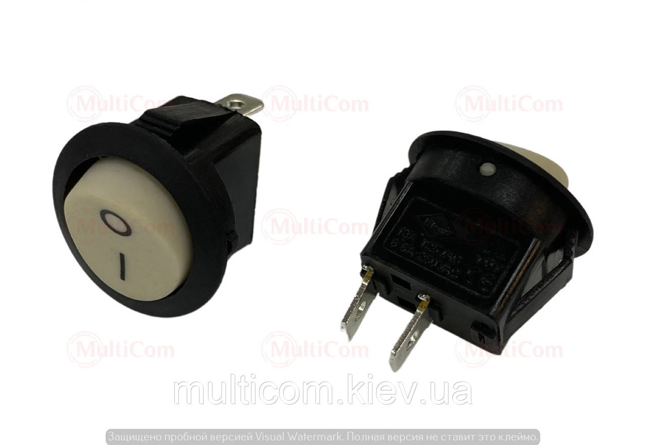 Перемикач круглий KCD-2 (ON-OFF), 2pin, 6A-250V, біло-чорний