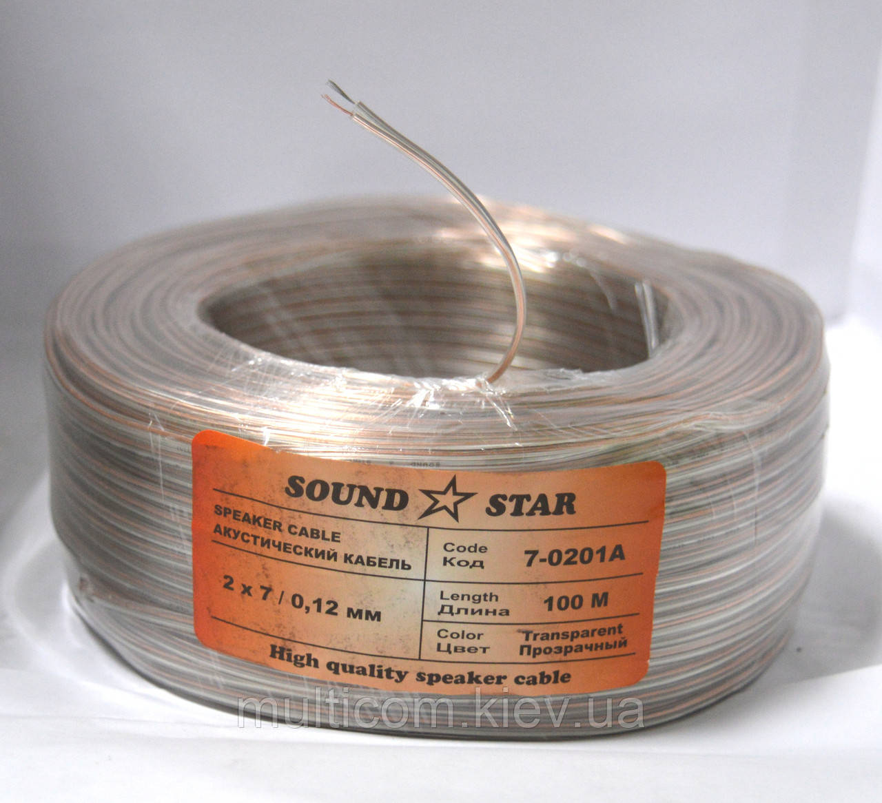 07-03-001. Кабель акустичний 2х0,08мм², ССА, прозорий, 100м