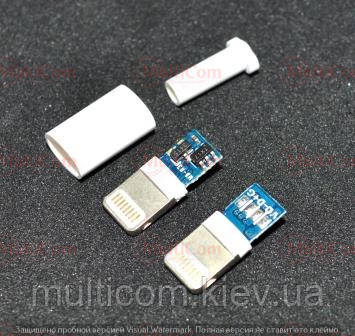 01-08-101. Штекер iPhone (Lightning) під кабель, розбірний, з платою, білий